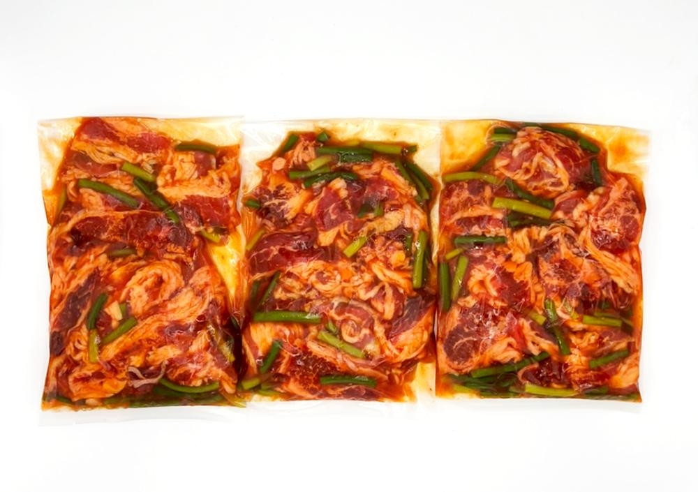 | 容量 | 牛たれ漬け:1.5kg(500g×3p) 博多和牛800g×九州産和牛700g 【原材料名】 国産牛肉(バラ・肩ロース・モモ)、還元水あめ(国内製造)、アミノ酸液、砂糖、しょうゆ、にんにく加工品、醸造酢、食塩、ごま油、りんご果汁、酵母エキス、いりごま、香味食用油、香辛料、寒天/増粘剤(加工デンプン、キサンタン)、酒精、調味料(アミノ酸)、酸化防止剤(ビタミンC)、リン酸塩(Na)、着色料(パプリカ色素、紅麹)、甘味料(カンゾウ)、(一部に小麦・大豆・りんご・ごまを含む)、にんにくの芽(中国産) |