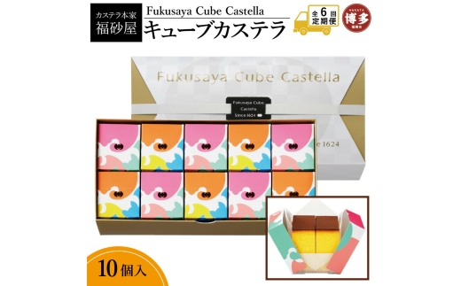 ※製造の関係で注文日により発送時期が異なります。 =================== << 発送に関するご注意 >> ◆~11/30までのご寄附の方◆ 順次発送いたしますが、ご発送までに1~2ヶ月ほど要する場合があります。 ◆12/1以降のご寄附の方◆ 製造の関係で翌年1/15以降発送再開となり、ご発送までに2~3ヶ月ほど要する場合があります。 =================== カステラ本家福砂屋は、寛永元年(1624)の創業以来、今日まで永きにわたり、カステラをつくりつづけてまいりました。熟練した職人による伝統のカステラを、小箱の色を変えてお届けいたします。 事業者 :(株)福砂屋 連絡先 :092-451-2938 関連キーワード:カステラ カステラ福砂屋 福さや ふくさや フクサヤ かすてら kasutera 焼き菓子 お菓子 菓子 おかし おやつ スイーツ 福砂屋 キューブカステラ 個包装 ギフト 贈答 常温 焼菓子 お取り寄せ 福岡市 伝統 和菓子 お土産 ふるさと納税 贈り物 ※画像はイメージです。 ※寄附金のご入金確認の翌月以降、初回発送から6ヶ月連続でお届けします。 ※フクサヤキューブは脱酸素剤を封入した小箱を包むピロー包装となります。(PEPA)となります。 ※商品のパッケージデザインは予告なく変更することがございます。予めご了承ください。 ※賞味期限は開封前の期限です。開封後はお早めにお召し上がりください。 ※季節によって賞味期限が変わります。 ※当社商品は蜂蜜を一切使っておりません。上質な水飴(米飴)を使用しております。 ※手づくりの為、ザラメ糖の量は、季節によって、一品ごとに多少の違いがございます。また時間の経過と共に溶けてまいりますので夏の暑い時には冷蔵庫等の涼しい所にて保管することをお勧めいたします。 ※本商品は生菓子になる為、発送後のキャンセルは出来かねますのでご了承ください。 ※尚、生産の都合上、御注文承りした日の翌日から4日後の発送とさせて戴きます。 ※保存方法:直射日光、高温多湿を避けて涼しい所にて保存ください。