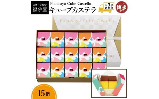 ※製造の関係で注文日により発送時期が異なります。 =================== << 発送に関するご注意 >> ◆~11/30までのご寄附の方◆ 順次発送いたしますが、ご発送までに1~2ヶ月ほど要する場合があります。 ◆12/1以降のご寄附の方◆ 製造の関係で翌年1/15以降発送再開となり、ご発送までに2~3ヶ月ほど要する場合があります。 =================== カステラ本家福砂屋は、寛永元年(1624)の創業以来、今日まで永きにわたり、カステラをつくりつづけてまいりました。熟練した職人による伝統のカステラを、小箱の色を変えてお届けいたします。 事業者 :(株)福砂屋 連絡先 :092-451-2938 関連キーワード:カステラ カステラ福砂屋 福さや ふくさや フクサヤ かすてら kasutera 焼き菓子 お菓子 菓子 おかし おやつ スイーツ 福砂屋 キューブカステラ 個包装 ギフト 贈答 常温 焼菓子 お取り寄せ 福岡市 伝統 和菓子 お土産 ふるさと納税 贈り物 ※画像はイメージです。 ※寄附金のご入金確認の翌月以降、初回発送から3ヶ月連続でお届けします。 ※フクサヤキューブは脱酸素剤を封入した小箱を包むピロー包装となります。(PEPA)となります。 ※商品のパッケージデザインは予告なく変更することがございます。予めご了承ください。 ※賞味期限は開封前の期限です。開封後はお早めにお召し上がりください。 ※季節によって賞味期限が変わります。 ※当社商品は蜂蜜を一切使っておりません。上質な水飴(米飴)を使用しております。 ※手づくりの為、ザラメ糖の量は、季節によって、一品ごとに多少の違いがございます。また時間の経過と共に溶けてまいりますので夏の暑い時には冷蔵庫等の涼しい所にて保管することをお勧めいたします。 ※本商品は生菓子になる為、発送後のキャンセルは出来かねますのでご了承ください。 ※尚、生産の都合上、御注文承りした日の翌日から4日後の発送とさせて戴きます。 ※保存方法:直射日光、高温多湿を避けて涼しい所にて保存ください。
