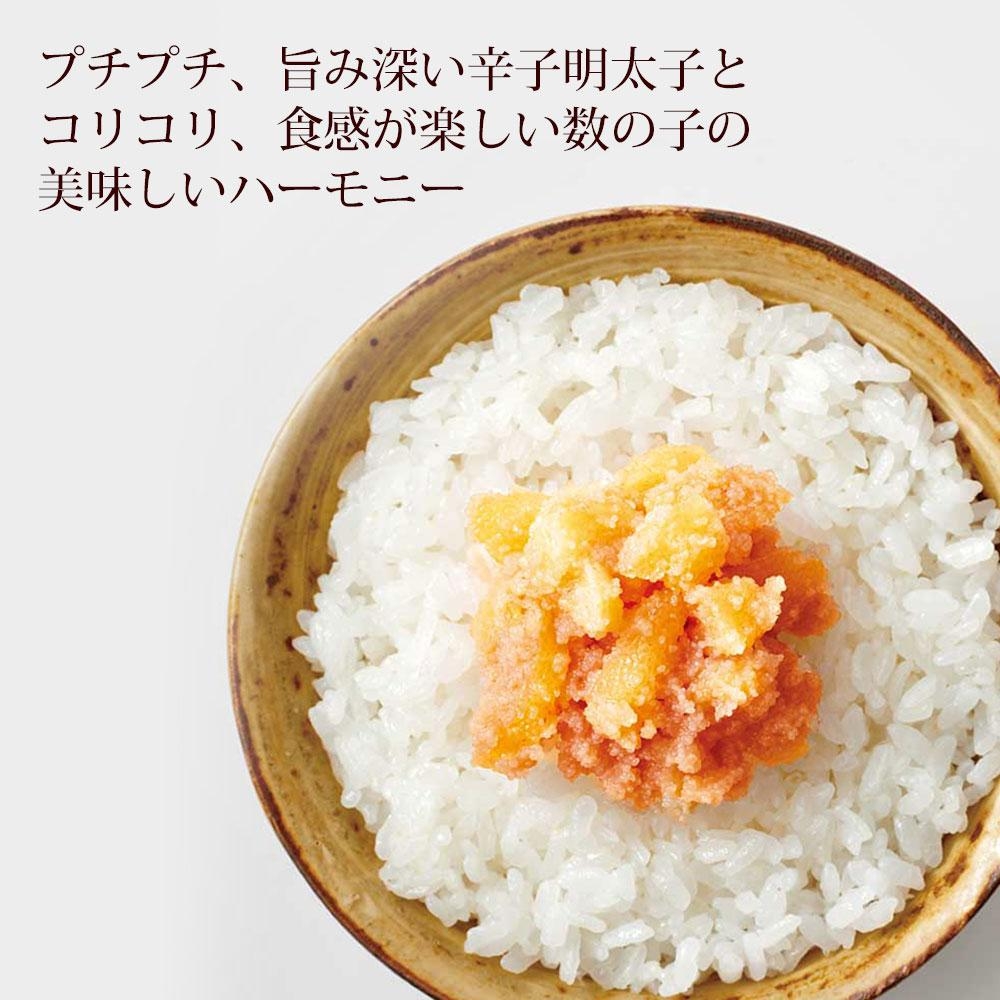 コリコリの食感が小気味よい数の子とピリッと辛い明太子のプチプチ食感がたまりません!