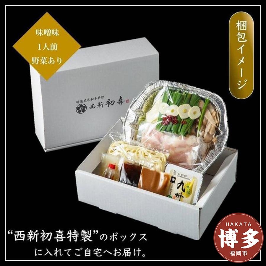 【九州銘柄産 黒毛和牛】博多もつ鍋 西新初喜の味噌1人前 野菜付き【離島配送不可】