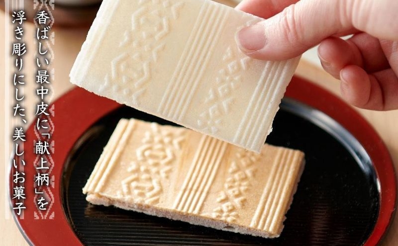 ショウガの飴、桂皮末の飴を最中にサンドした干菓子です。 「博多献上」は博多織の模様を中身・包装に描いた美しいお菓子です。 博多献上とはもともと、博多織の織物のことで、江戸時代に黒田藩が博多織を幕府に献上していたことに由来する言葉です。 郷土の芸術をお菓子に表現したのがこの「博多献上」です。 素朴ながらも、香り豊かな干菓子を是非ご賞味ください。 製造場所:福岡市博多区網場5-18-601 事業者 :ばんぎや菓子舗 連絡先 :092-291-5027 ※画像はイメージです。 ※常温保存、高温多湿は避けてください。 ※郵便局・銀行振込でのご寄附の場合、入金後、確認までに10日前後かかりますので、 返礼品を指定日にお届けできない場合があります。予めご了承ください。