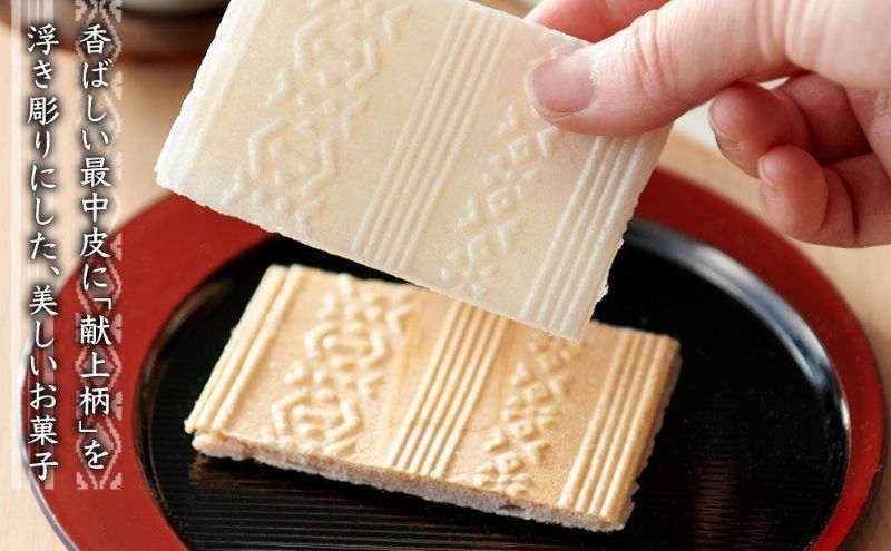 ショウガの飴、桂皮末の飴を最中にサンドした干菓子です。 「博多献上」は博多織の模様を中身・包装に描いた美しいお菓子です。 博多献上とはもともと、博多織の織物のことで、江戸時代に黒田藩が博多織を幕府に献上していたことに由来する言葉です。 郷土の芸術をお菓子に表現したのがこの「博多献上」です。 素朴ながらも、香り豊かな干菓子を是非ご賞味ください。 製造場所:福岡市博多区網場5-18-601 事業者 :ばんぎや菓子舗 連絡先 :092-291-5027 ※画像はイメージです。 ※常温保存、高温多湿は避けてください。 ※郵便局・銀行振込でのご寄附の場合、入金後、確認までに10日前後かかりますので、 返礼品を指定日にお届けできない場合があります。予めご了承ください。