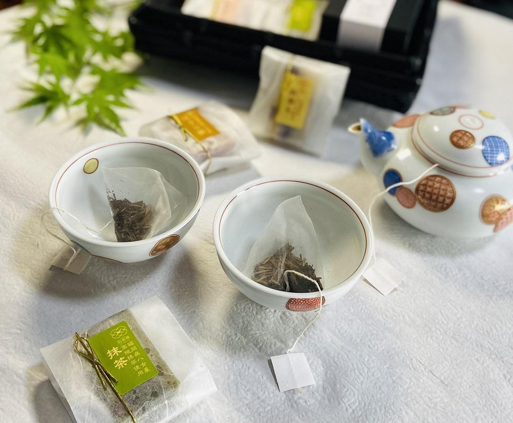 合わせていただくのにおすすめの農薬不使用の女将おすすめのお茶は、ティーバッグになっておりましてとても便利です。