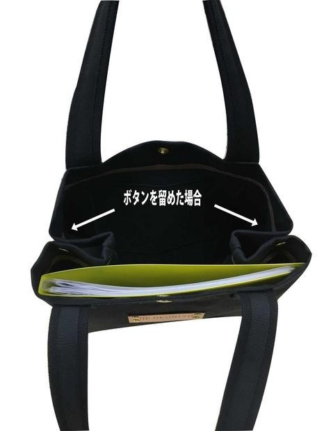 トートバッグについているスナップボタンを使って口を絞ることができます。