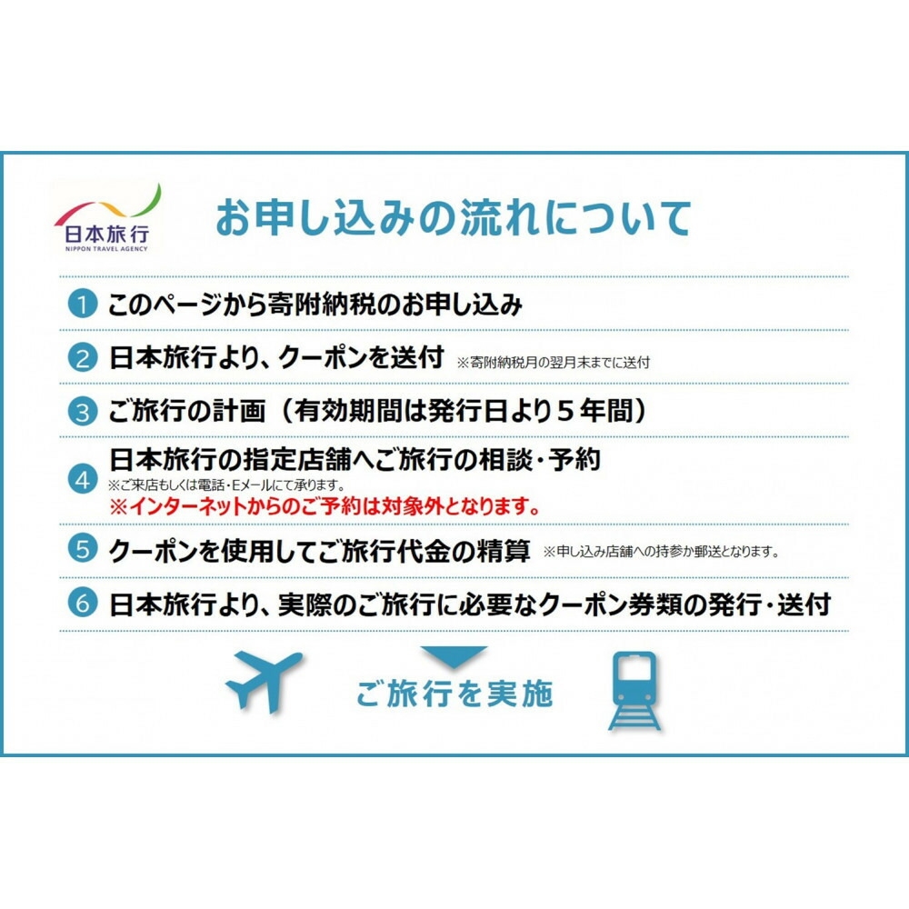 ■寄附のご入金確認後、利用に関する案内書面とともに「旅行クーポン」を郵送(簡易書留)にてお送りします。