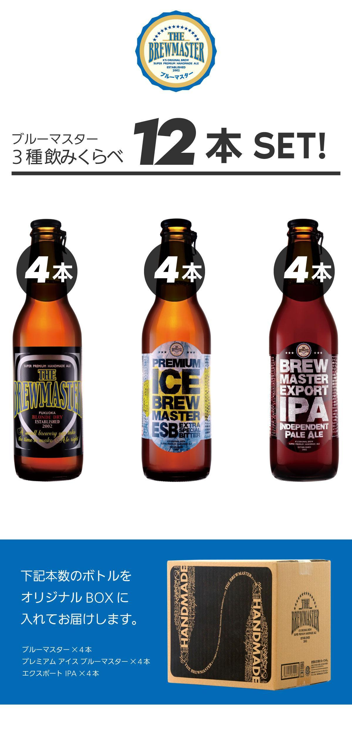 福岡市発クラフトビール ブルーマスター スタンダード3種x4本 330ml×12本セット