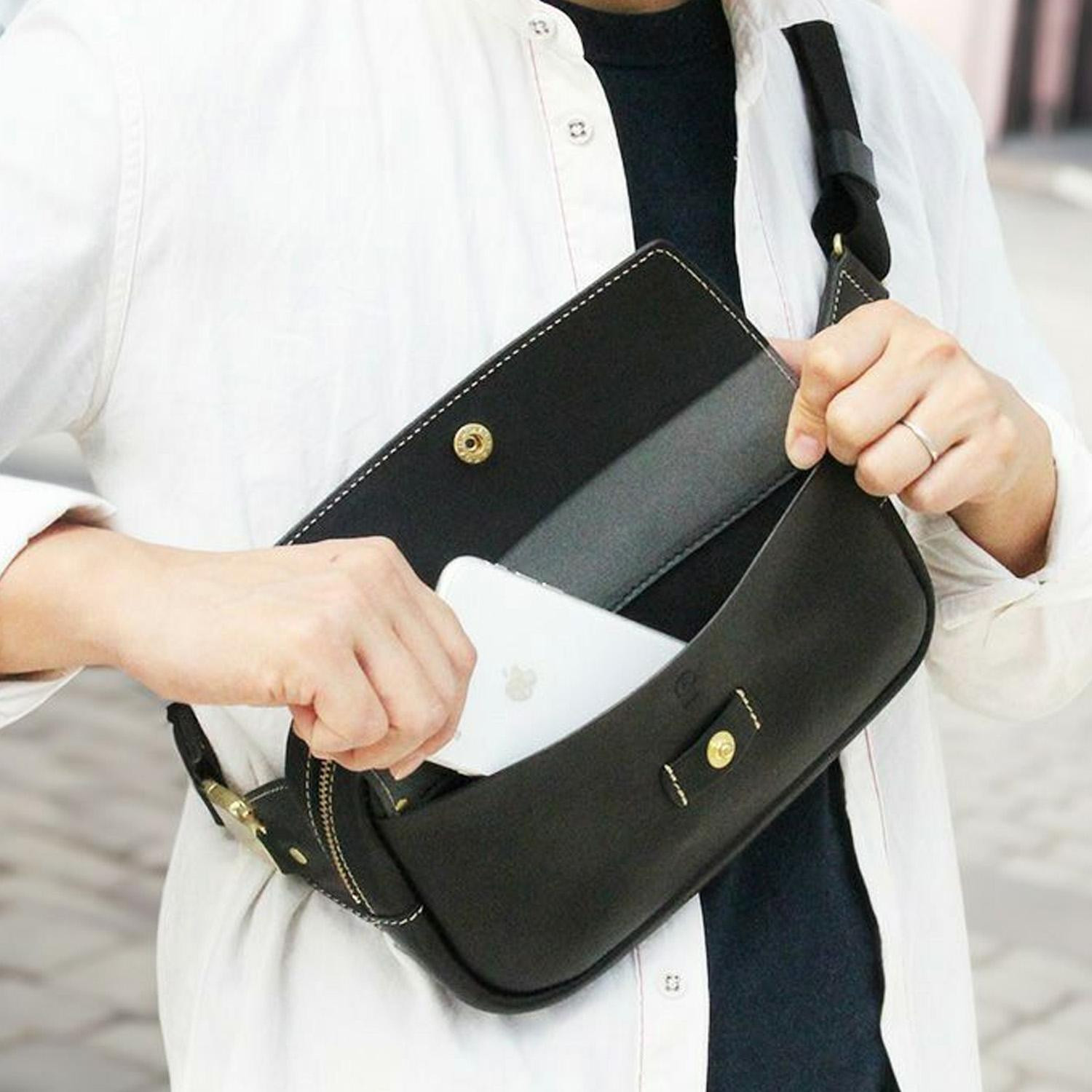 ソフトレザーで仕立てた大人顔のボディバッグ。