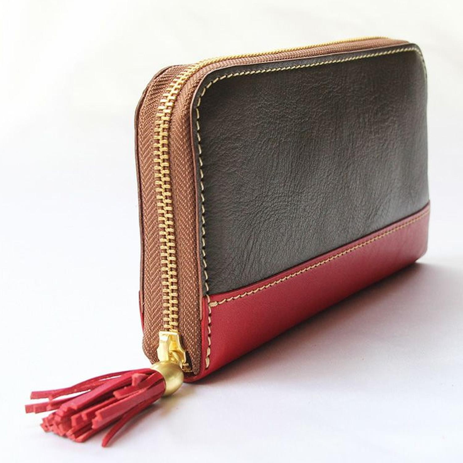 適度な厚みがあり、手で握りやすいマチ幅。 ファスナーの引き手はタッセルチャームが付いています。