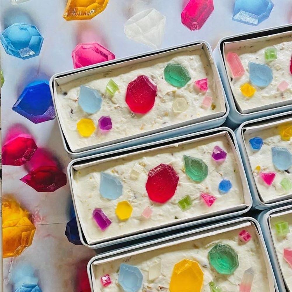 これに鉱物や宝石のイメージを加えた、アート作品のようなお菓子です。