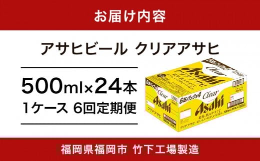 福岡市竹下工場で製造! 【全6回定期便】アサヒ クリアアサヒ500缶ケース【福岡市竹下工場製造!】