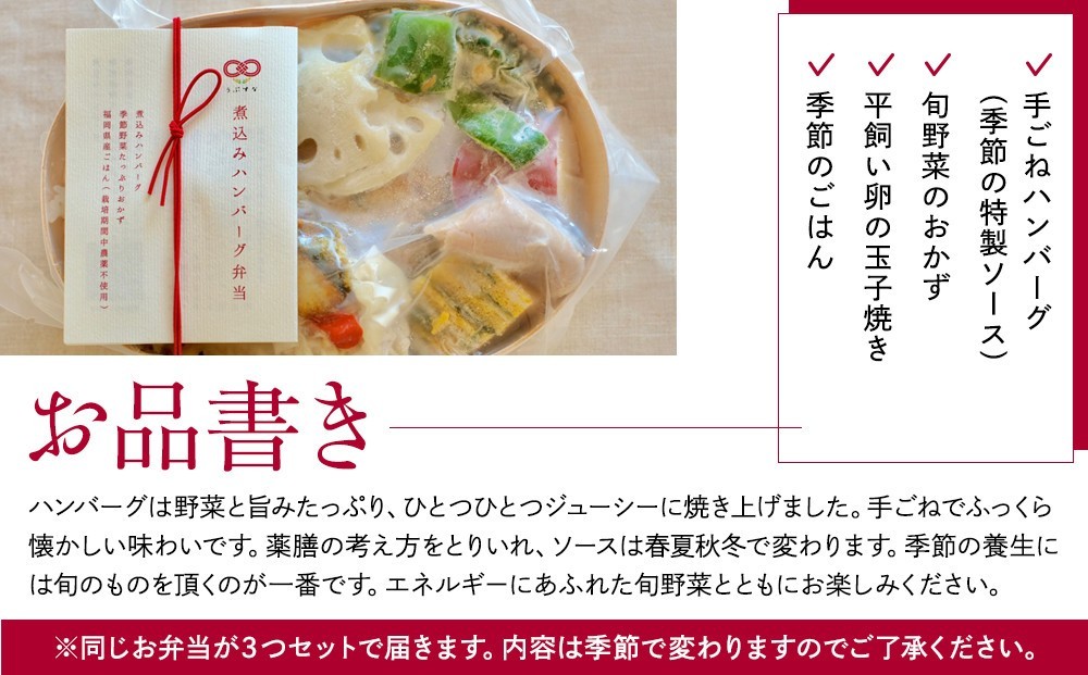 【冷凍】煮込みハンバーグ弁当3食セット 有機・特別栽培野菜 九州 福岡 国産食材