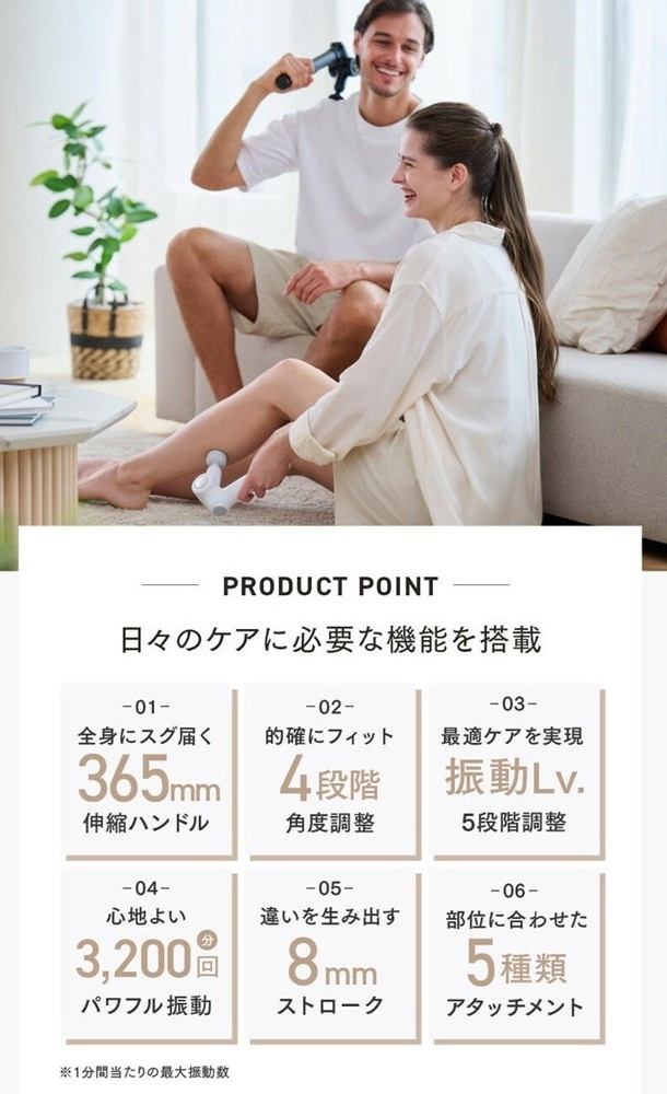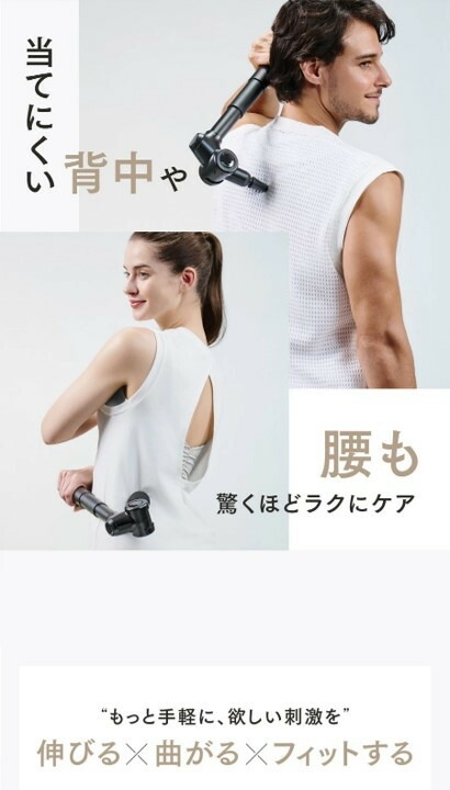 4段階の角度調整が可能なヘッドと背中まで届くハンドルで自由自在なセルフケアが可能に。 EXシリーズ最軽量の約336gなのにパワフルさはそのまま。 女性でも扱いやすい快適設計で、いつでも、思い立った時にボディケアを叶えます。 腰や背中などセルフケアが届きにくい箇所に、欲しい刺激を届けます。 事業者:創通メディカル 連絡先:092-260-7366 関連キーワード:美容家電 健康家電 日用品 ※画像はイメージです。 ※カラーをお選びください。