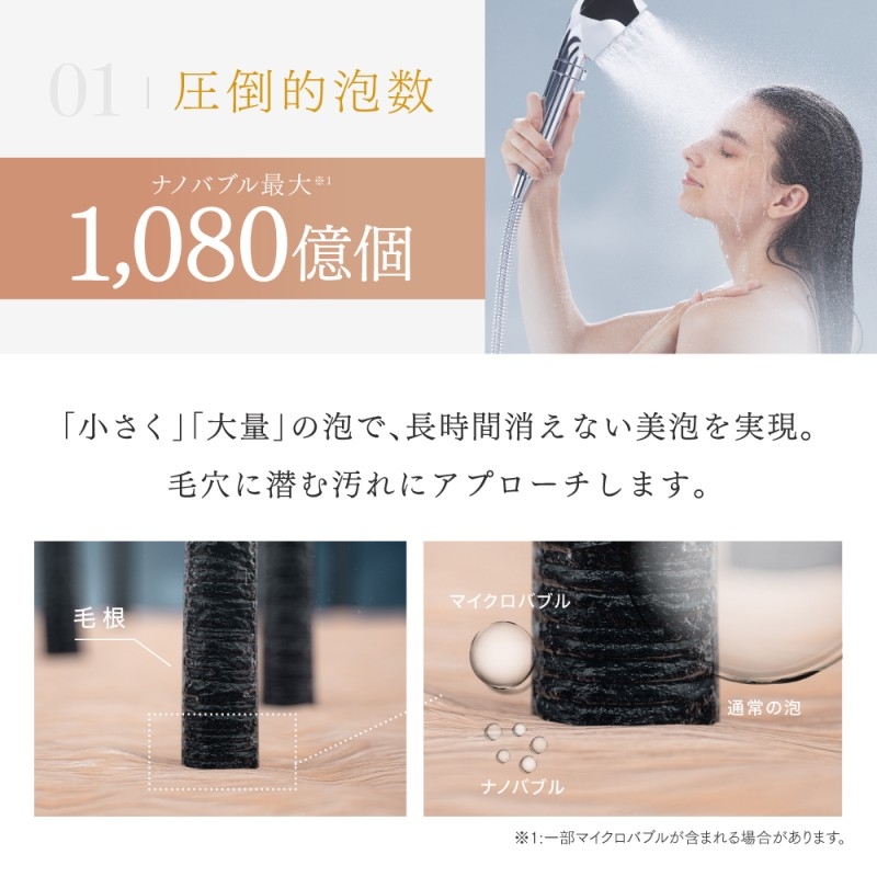 1分間に最大1080億個もの超微細なバブルが発生。