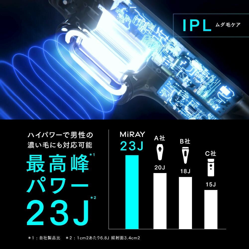 肌へのダメージを最大限抑えつつ、最大23J(ジュール)※1のハイパワーを搭載。