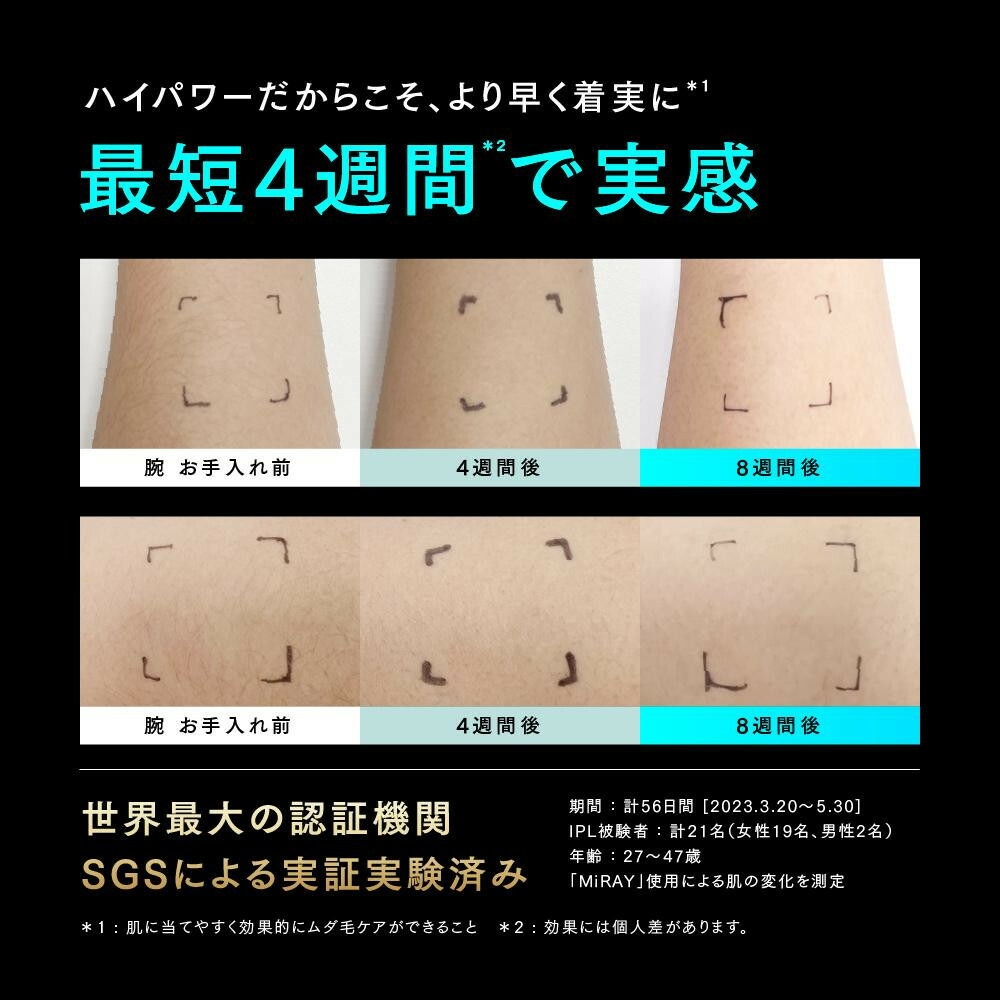 MYTREX MiRAYシリーズから史上初、コードレス光美容器誕生。 軽量&コンパクトなボディに驚きのパワーを搭載し、1cm四方あたり約4.7J(ジュール)の高出力を実現。 また、独自のW冷却システムにより急速かつ強力に照射面を約10度まで瞬間冷却。 肌へのダメージを最大限抑えつつ、より早く、着実なムダ毛ケア※2を叶えます。 さらに、美肌モードを使えば、エステサロン級のブライトケアも※3。 使う場所やシーンを選ばないコードレス光美容器で、より続けやすく、より実感できるムダ毛・美肌ケアを。 ※1 痛みを感じにくいこと ※2 肌に当てやすく効率的にムダ毛ケアができること ※3 ムダ毛が目立たない肌の見た目において 事業者:創通メディカル 連絡先:092-260-7366 関連キーワード:美容家電 日用品 ※画像はイメージです。