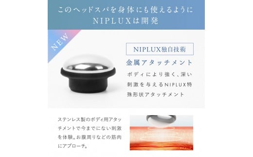 今回新しく開発した「ボディ用金属アタッチメント」は、ボディにより強く、深い刺激を与えるNIPLUX特殊形状のアタッチメント。