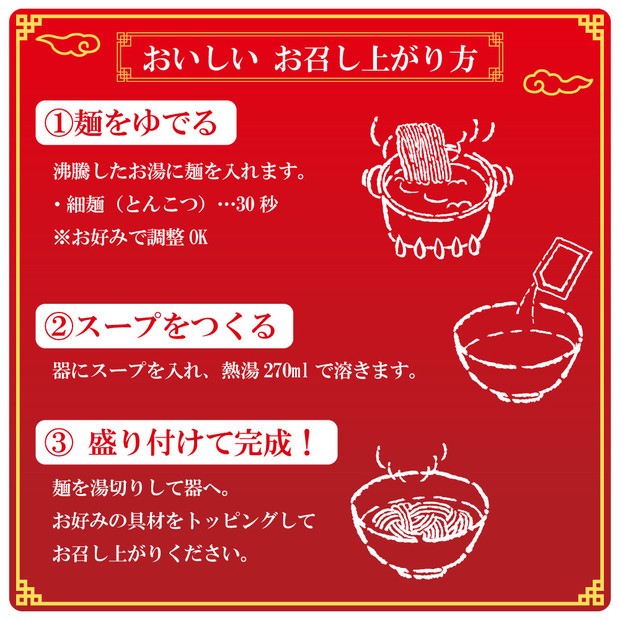 | 容量 | 博多名物のラー麦とんこつラーメン 製麺:吉田食品(福岡市早良区次郎丸) (生麺/細麺×5) スープ:松原食品(株)(福岡市東区箱崎) (濃厚とんこつ×5) 博多のラーメン文化を支える職人たちのこだわりが詰まった一杯。 中でも「ラー麦麺」は、福岡産小麦100%使用の特別な麺。 噛むたびに広がる小麦の香りと、職人が生み出す独特のコシ。 お店の味をご家庭で、最高の一杯を楽しめます。 博多ラーメン5食セット(濃口とんこつ×5) 原産国/製造国:日本 原材料:小麦粉(国内製造)、小麦たんぱく/かんすい、軟化剤(プロピレングリコール)、着色料(クチナシ色素) 製造者:吉田食品 福岡市早良区次郎丸2-33-54 事業者名:Feel Songood株式会社 関連キーワード:麺 食品 加工食品 |