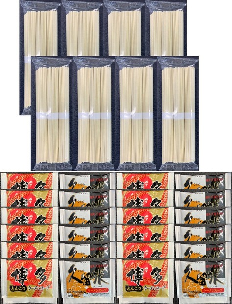 | 容量 | ●乾麺(75g×3束)×8袋 ●博多ラーメンスープ34g×12袋 ●久留米ラーメンスープ38g×12袋 |