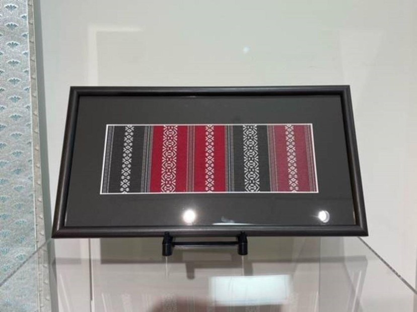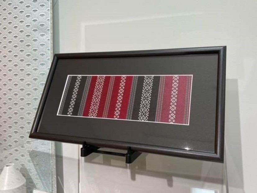 博多献上紋様帯地が額装されています。