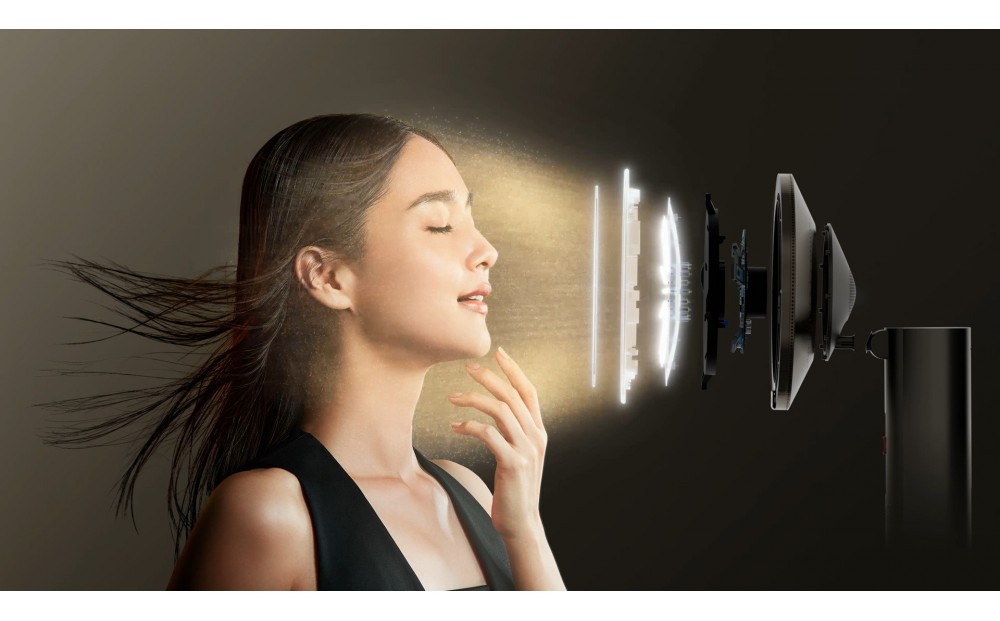 これまでの家庭用光美容器にはなかった高出力の光を、鏡面から肌に向けて照射します。