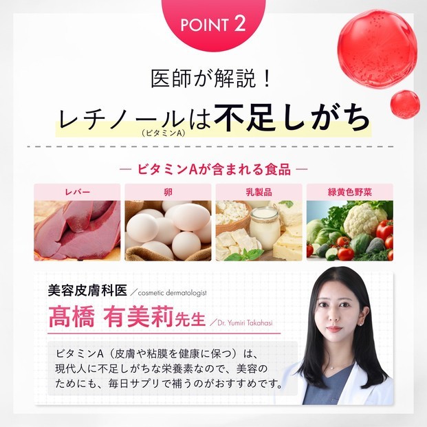今や化粧品の定番成分レチノール(ビタミンA)は、塗るだけでなく、サプリメントとして摂取することも美容への新しいアプローチとしておすすめです。