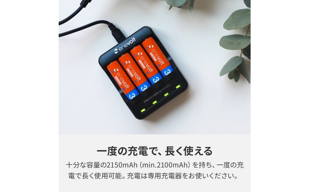 強さ長持ち大容量2150mAh!enevolt エネボルト 単3充電池 8本セットです。1000回繰り返し充電して使えるので、お財布にも地球にも優しい。自然放電量が少なく、フル充電から3年を経過しても、80%の容量が残っています。