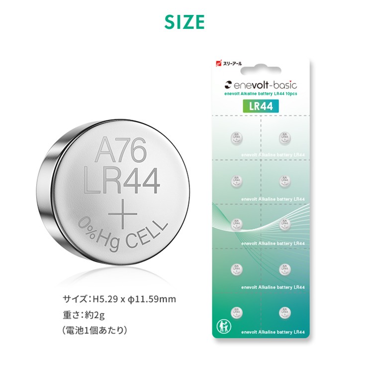 | 容量 | ブランド名:enevolt メーカー型番:3R-LR44H 代表カラー:シルバー 乾電池タイプ:アルカリ電池 電池規格:ボタン電池 本数:70 |