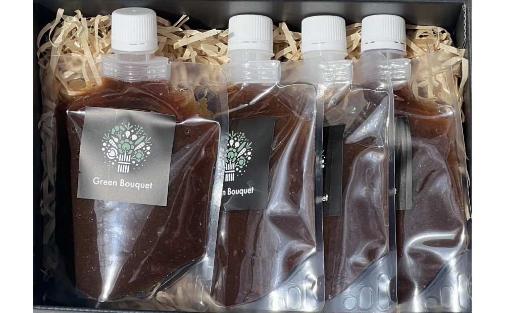 香ばしい九州本醸造醤油に、じっくり時間をかけて煮込んだ国産玉ねぎを合わせた、コク深くやさしい甘みの玉ねぎ醤油ドレッシングの4本セットです。