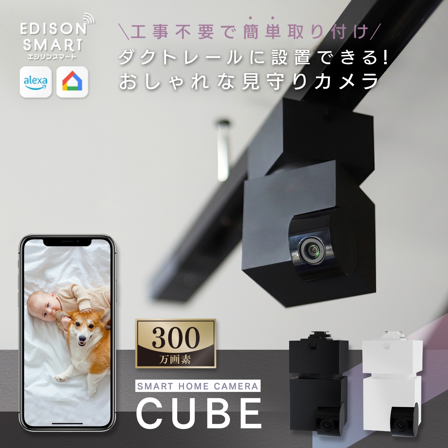 エジソンスマート 見守りカメラCUBE + 専用ダクトレール変換プラグセット 福岡市