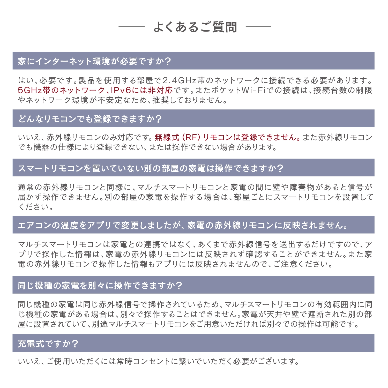 テレビ・エアコン・扇風機・レコーダー・シーリングライト・電動カーテンなど、赤外線リモコン対応家電を一括で操作可能。リモコンの紛失や電池切れ、小さなお子様やペットによる誤操作といった日々のストレスをこれ一台で解消できます。工事不要・ハブ不要で、今ある家電をそのままスマート化できます。