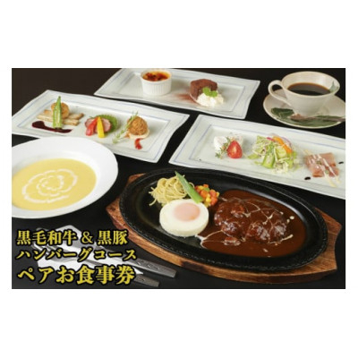 黒毛和牛&黒豚ハンバーグコース ペアお食事券【1545973】