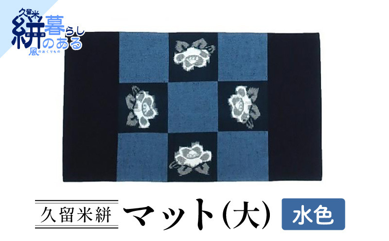 久留米絣(かすり)マット(大)水色_久留米絣 マット 大 1枚 カラー 水色 藍染め 手織り 椿柄 かすり 絣 無地 ランチョンマット テーブルセンター インテリア 裏面 リバーシブル テーブルリネン ティータイム 国産 伝統工芸品 工芸品 手作り 日用品 福岡県 久留米市 送料無料_Jk037-AQU
