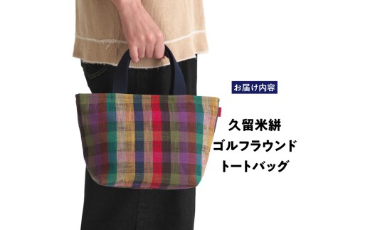 久留米絣ゴルフラウンドトートバッグ(SM)_久留米絣 ゴルフラウンド トートバッグ SM チェック柄 バッグ 儀右ェ門ブランド おしゃれ 柄 内ポケット付き お出かけ 買い物 日用品 雑貨 工芸品 お取り寄せ 福岡県 久留米市 送料無料_Nx171