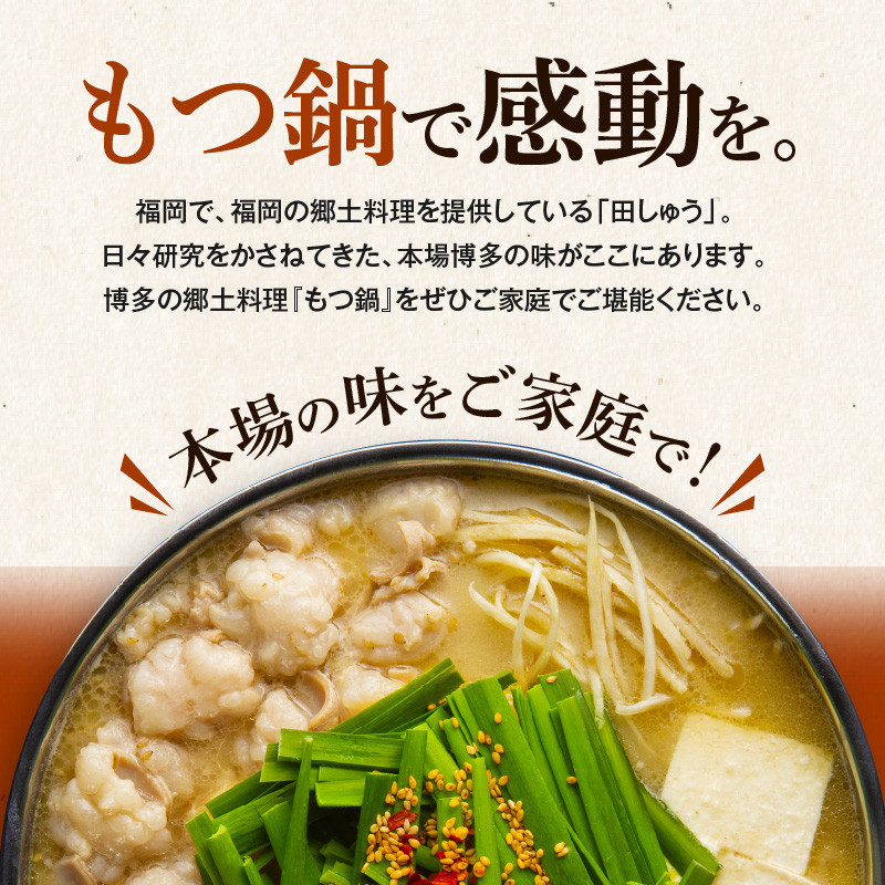 博多もつ鍋専門店「田しゅう」がご提供するはもつ鍋味噌味2~3人前 田しゅうもつ鍋セット味噌味2~3人前_田しゅう もつ鍋 セット 味噌味 醤油味 2~3人前 博多 郷土料理 こだわり 国産 牛 もつ 職人 厳選 手切り にんにく 出汁 旨味 リピート ちゃんぽん麺 味噌 醤油 加工品 食べ物 グルメ お取り寄せ お取り寄せグルメ 福岡県 久留米市 送料無料_Cn110