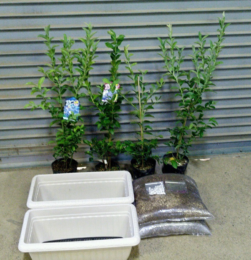 | 容量 | ブルーベリー苗2年生×4本 ブルーベリー専用土(鹿沼土、赤玉土、パーライト、腐葉土、かや土、バーミキュライト、ピートモス) IB化成肥料 専用鉢2個 植え方・育て方説明書 |