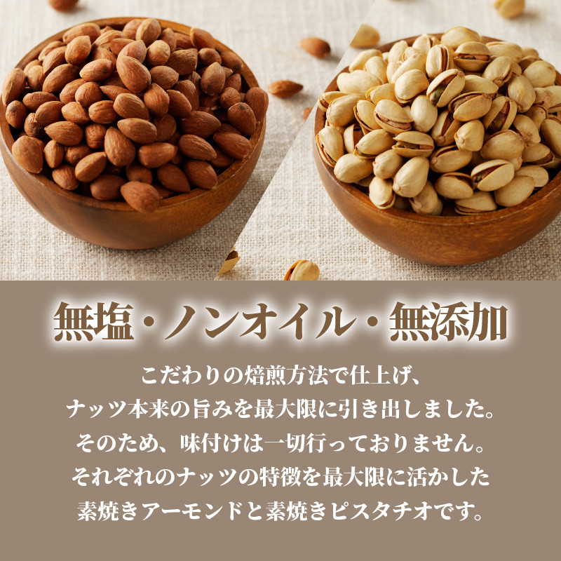 一つ一つ丁寧に焙煎しそれぞれのナッツの特徴を最大限に活かした素焼きアーモンドと素焼きピスタチオ。