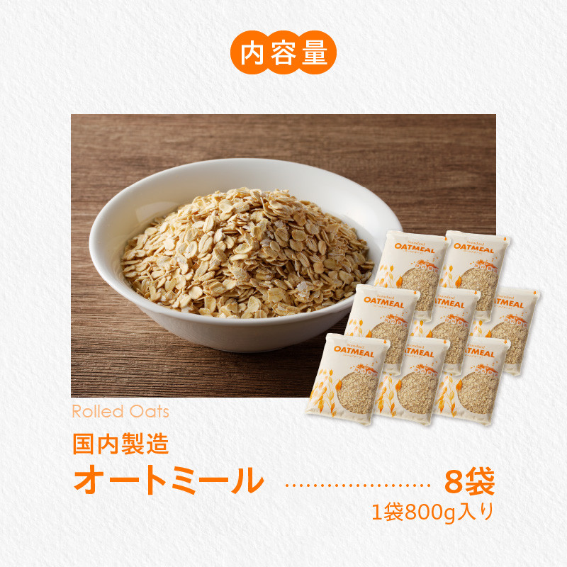 安心安全の国内製造オートミール オートミール ロールドオーツ 6.4kg(1袋800g入り×8) オーツ麦 1袋800g入り 無添加 国内製造 チャック付き袋 もちもち 食感_オートミール ロールドオーツ オーツ麦 低糖質 低GI アレルゲンフリー グルテンフリー たんぱく質 食物繊維 鉄分 国内製造 品質管理 徹底 安心 安全 もちもち食感 粒感 噛み応え 送料無料 保存 便利 チャック付き 福岡県 久留米市_Ca528