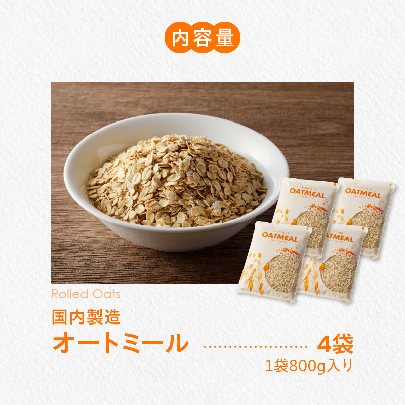 安心安全の国内製造オートミール オートミール ロールドオーツ 3.2kg(1袋800g入り×4) オーツ麦 1袋800g入り 無添加 国内製造 チャック付き袋 もちもち 食感_オートミール ロールドオーツ オーツ麦 低糖質 低GI アレルゲンフリー グルテンフリー たんぱく質 食物繊維 鉄分 国内製造 品質管理 徹底 安心 安全 もちもち食感 粒感 噛み応え 送料無料 保存 便利 チャック付き 福岡県 久留米市_Ca530