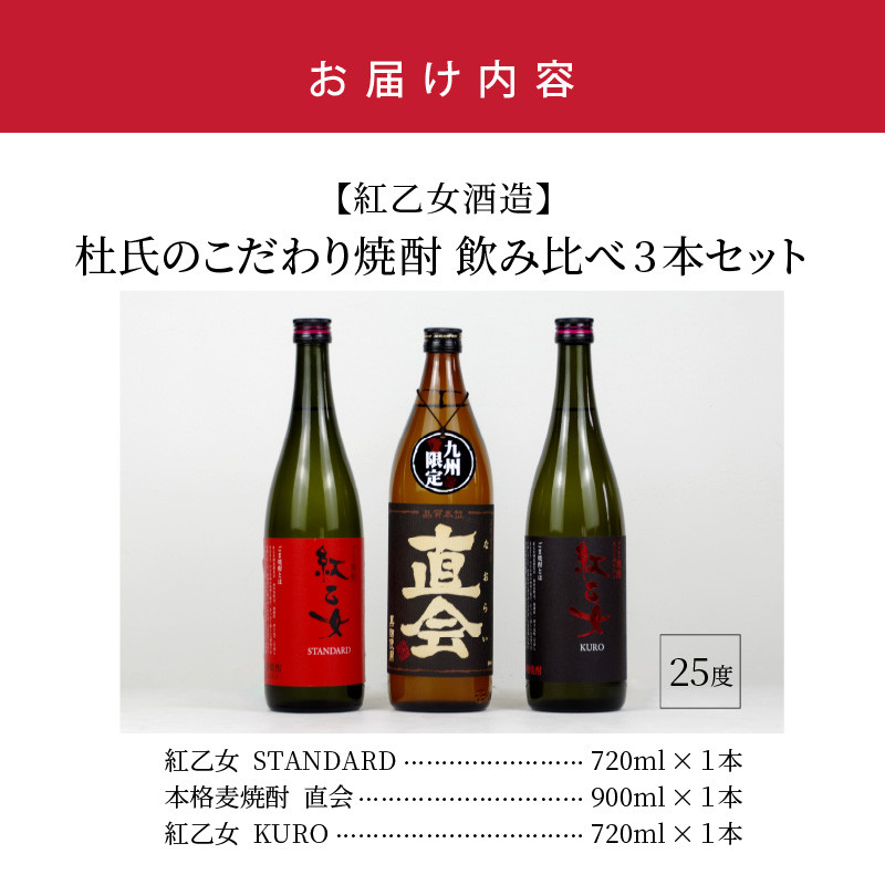 【紅乙女酒造】杜氏のこだわり焼酎、飲み比べ3本セット (白ご…