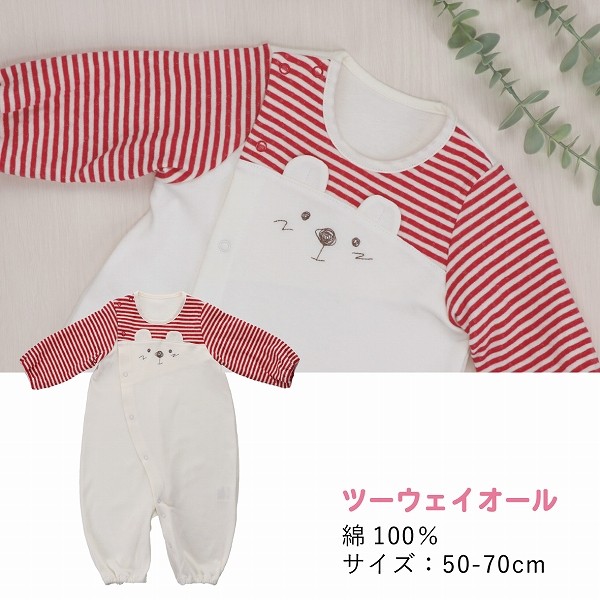 | 容量 | ●ツーウェイオール×2枚 サイズ:50~70cm ●ベスト ●スタイ×2枚 ●短肌着 サイズ:50~60cm ●コンビ肌着 サイズ:50~60cm ●ガーゼハンカチ(3枚組) 【※お申込みの際、ネイビーまたはレッドをご選択ください】 |