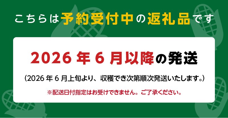 6月上旬より、収穫でき次第順次発送いたします。 ※申込状況、収穫状況等によりお届け時期が遅れる場合がございます。あらかじめご了承ください。 |