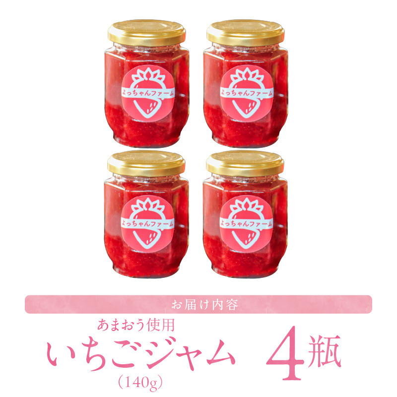 あまおう使用 あまおう使用 いちごジャム140g×4瓶_あまおう ジャム 土耕栽培 本格ジャム スイーツ 贈り物 朝食 ヨーグルト パン 果物 加工食 着色料不使用 保存料不使用 こだわり バケット アイス よっちゃんファーム 久留米市 グルメ お取り寄せ 送料無料_Ca042