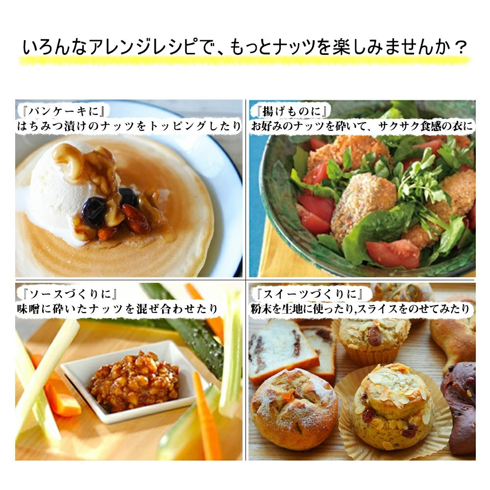 品種の特徴としてビュート種を使用。 一般的なアーモンドの品種に比べて小粒で厚みがあり、甘くて香りが強いのが特徴です。 チャック付きの袋で450gに分けているので、ご家庭での保存にも最適です。毎日を健康に過ごして頂くためにも続けて適量を食べて頂くことをオススメしています。 ご注意事項 ●返礼品到着後は、お早めにお召し上がりください。 ●直射日光・高温多湿の場所は避け、涼しい場所での保管をお願い致します。 地場産品基準:3号 基準に該当する理由:区域内で焙煎、袋詰め等を行っており、当該工程を経て完成した当該返礼品等の付加価値のうち半分を一定程度以上上回る割合が当該工程によるものであるため