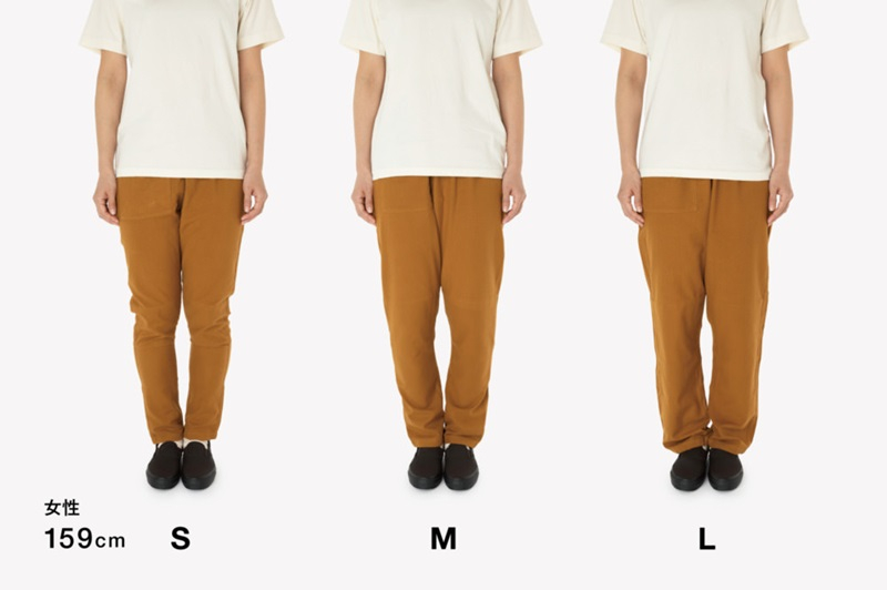 「もんぺ」というと腰回りのゆったりした農作業着のイメージがありますが、普段履きしやすい様に、既存のもんぺと比較して腰回りをすっきりさせ細身にしています。もちろん農作業着としてもご使用いただけます。