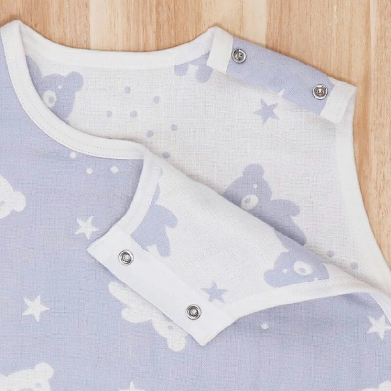 6重ガーゼ寝袋(スターベア)_6重 ガーゼ 寝袋 スリーパー スターベア くまさん 夜空 ブルー グレー 男の子 女の子 おすすめ 心地よい サイズ感 着せ替えしやすい はだけにくい オールシーズン 1年中 使える 子供服 ベビー用品 赤ちゃん 赤ちゃんの城 福岡県 久留米市 送料無料_Sd023