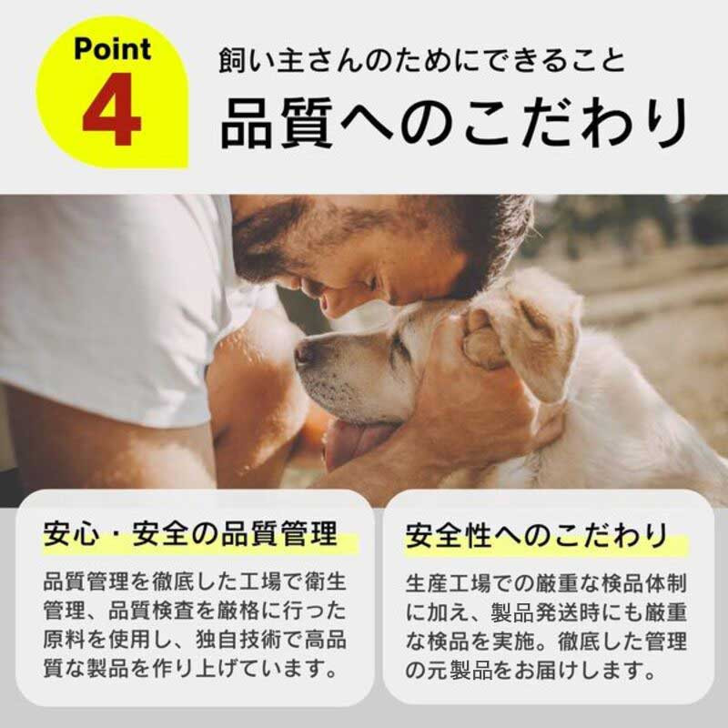 じっくりと乾燥させることで、噛み応えのあるハードな食感に仕上げています。長く噛むことで、愛犬の満足度を高めます。小型犬から大型犬まで、幅広い犬種に対応しています。