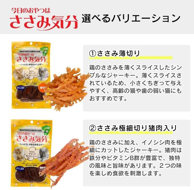 今日のおやつはささみ気分 40g×40袋セット_今日のおやつはささみ気分 40g × 40袋 セット 選べる セット内容 薄切り 極細切り猪肉入り 九州産 ささみ おやつ グルテンフリー グレインフリー 高タンパク質 低脂肪 愛猫 健康維持 しっとり やわらかい お腹にやさしい 福岡県 久留米市_Pf078