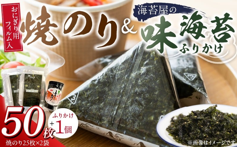 手軽にコンビニ風のおにぎりが作れます。お弁当作りに便利です。 焼のりおにぎり用フィルム入25枚×2袋 海苔屋の味海苔ふりかけ セット_焼のり 25枚×2袋 おにぎり用 フィルム入 手軽 コンビニ風 おにぎり 味海苔 ふりかけ 味付け 海苔 きな粉 まぶした ごま 風味 豊か ご飯 パスタ 麺類 食品 加工品 お取り寄せ グルメ お取り寄せグルメ 福岡県 久留米市 送料無料_Cs412