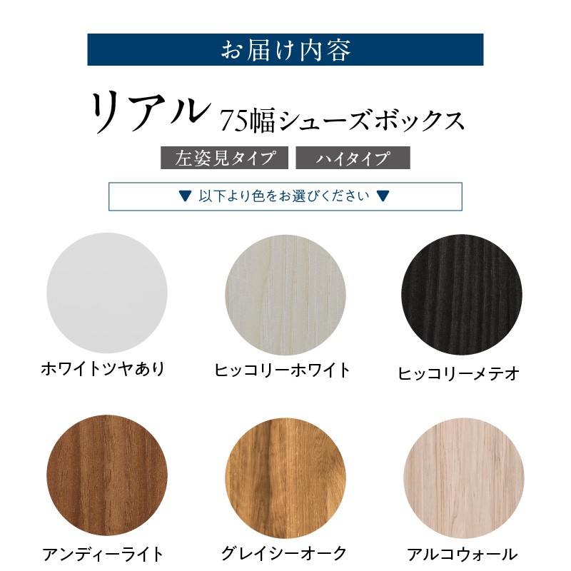 | 容量 | シューズボックス×1 外寸(cm):幅(W)75.2×奥行(D)35×高さ(H)184.7 ※アジャスター(10.0cm)を含む 出荷重量(梱包含む):約47kg 【カラーをお選びください】 ホワイト つや有 ヒッコリーホワイト ヒッコリーメテオ アンディーライト グレイシーオーク アルコウォール |